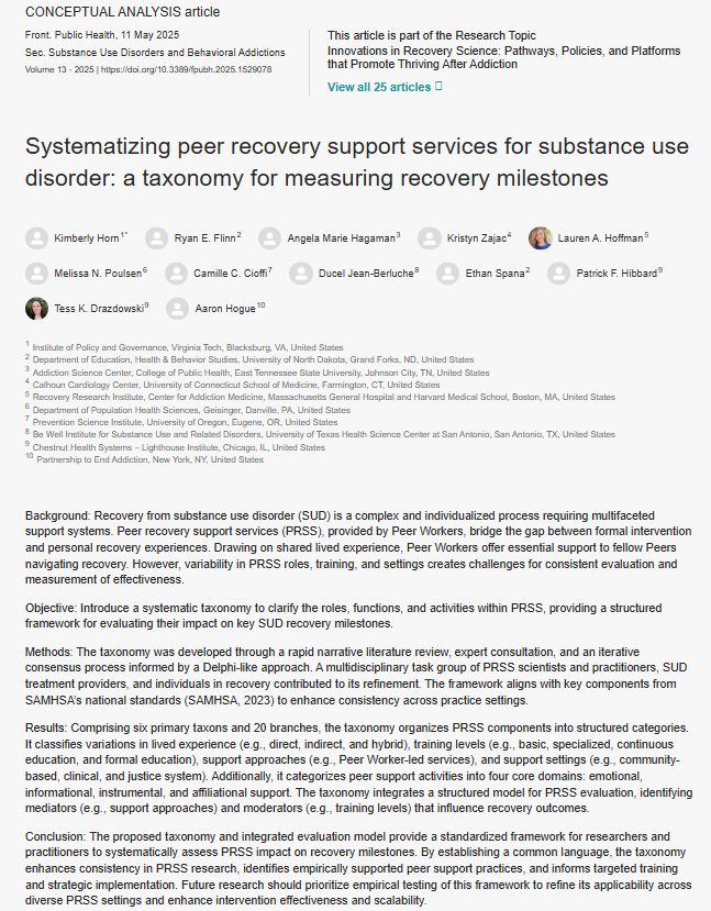 Peer recovery support study update